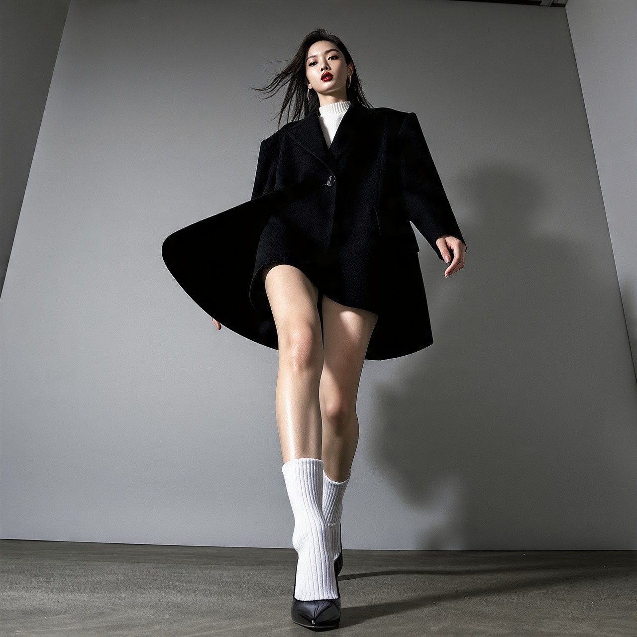 Statement Outerwear: A bold coat or leather jacket elevates any simple outfit.